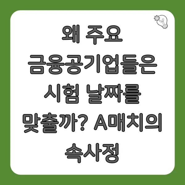 만약 여러 A매치 기업들이 다른 날짜에 시험을 본다면, 뛰어난 실력을 가진 지원자 한 명이 여러 금융공기업에 동시 합격하는 상황이 빈번하게 발생할 것입니다. 지원자는 결국 한 곳을 선택하게 되고, 나머지 합격한 기업들은 또다시 추가 합격자를 발표하거나 재채용 절차를 밟아야 하는 비효율을 감수해야 합니다. 이러한 불필요한 과정과 비용을 줄이고, 더 많은 지원자에게 기회를 공정하게 제공하기 위해 A매치 기업들은 필기시험 일정을 조율하는 것입니다. 이 때문에 A매치 시험일은 금융공기업 취업 준비생들에게 매우 중요한 날짜가 됩니다.