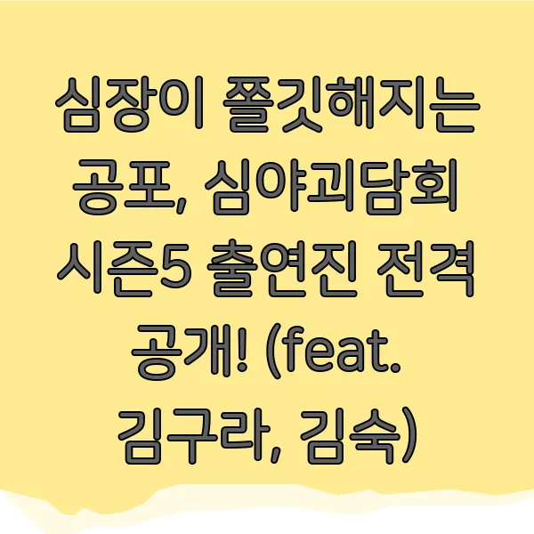 😱 심장이 쫄깃해지는 공포, 심야괴담회 시즌5 출연진 전격 공개! (feat. 김구라, 김숙)